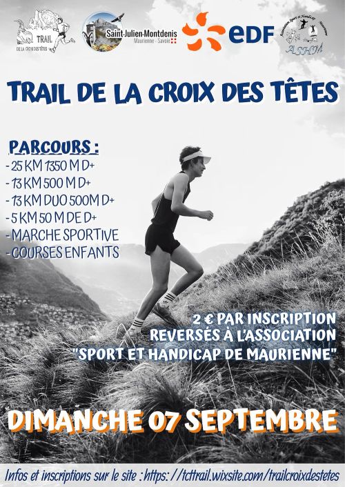 Le Trail de la Croix des Têtes, à Saint-Julien-Mont-Denis en Savoie, invite coureurs et marcheurs à découvrir la vallée de la Maurienne, au pied de la majestueuse Croix des Têtes, la plus haute falaise calcaire d’Europe. Avec des parcours de 5, 13 et 25 km, traversez des sentiers alpins sauvages, des villages pittoresques et des paysages montagneux époustouflants du massif de la Vanoise. Cet événement caritatif, soutenant l’association Sport et Handicap de Maurienne, allie défi sportif et convivialité. Venez courir ou marcher dans ce cadre exceptionnel et solidaire !