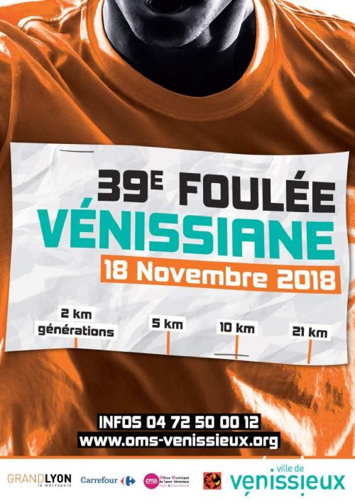 La Foulée Vénissiane regroupe 4 épreuves. et se déroulera sur la commune de Vénissieux, départ sur le boulevard Marcel Sembat et arrivée rue Général Petit. L’événement est co-organisé par la Ville de Vénissieux, l’Office Municipal du Sport de Vénissieux et l’AFA Feyzin-Vénissieux. Le 10 km et le 21 km ont été mesurés par un officiel des courses hors stade de la FFA et sont labellisés au niveau régional par la Fédération Française d’Athlétisme permettant ainsi aux coureurs licenciés de se qualifier au Championnat de France