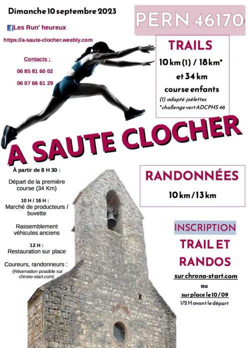 La course nature A Saute Clocher orgénisée par les Run'heureux. Une journée nature, patrimoine, sportive, conviviale, solidaire avec 3 parcours