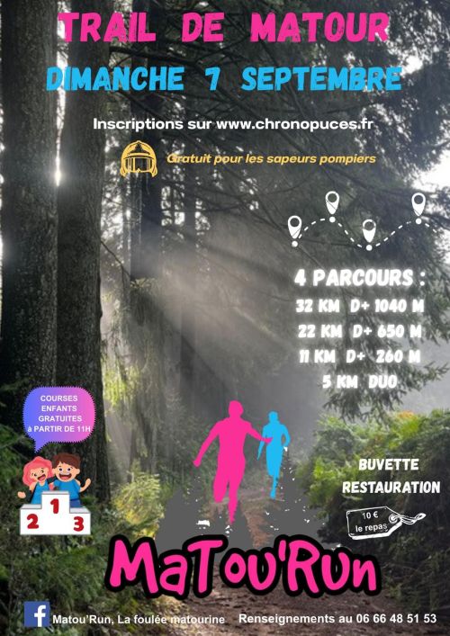 Comme tous les ans à Matour la tradition c'est la convivialité la bonne humeur, la simplicité mais aussi l'esprit de compétition. Départ/arrivée dans notre superbe parc du manoir qui a fait peau neuve. Alors venez découvrir Matour et ses environs, souvent appelée la petite suisse, MATOUR est entre le Haut-Clunysois, le Mâconnais, le Beaujolais et le Charolais.