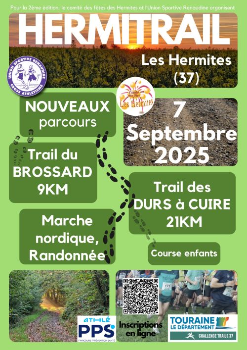 Le comité des Fêtes des Hermites et l’Union Sportive Renaudine Cross Athlétisme (USRAC) s'unissent pour vous proposer un trail nature. Nous vous attendons au départ de l’Hermi’trail dans ce cadre exceptionnel qu’est l'étang du Brossard des Hermites (37). Restauration et buvette sur place pour un moment convivial et de partage.