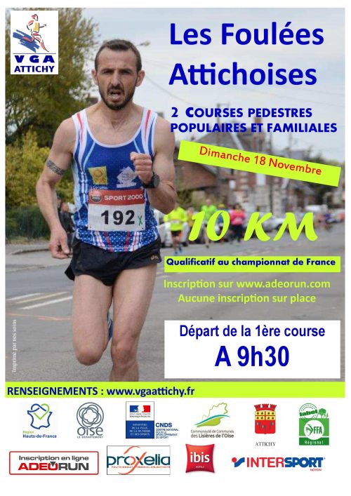 Envie de vous mesurer aux autres pour le challenge ou tenter une qualification aux championnat de France des 10 km ? Rien de plus simple : inscrivez-vous à la 23ème édition des Foulées Attichoises! Le parcours est plat et très roulant sur route en ville autour d'un étang.