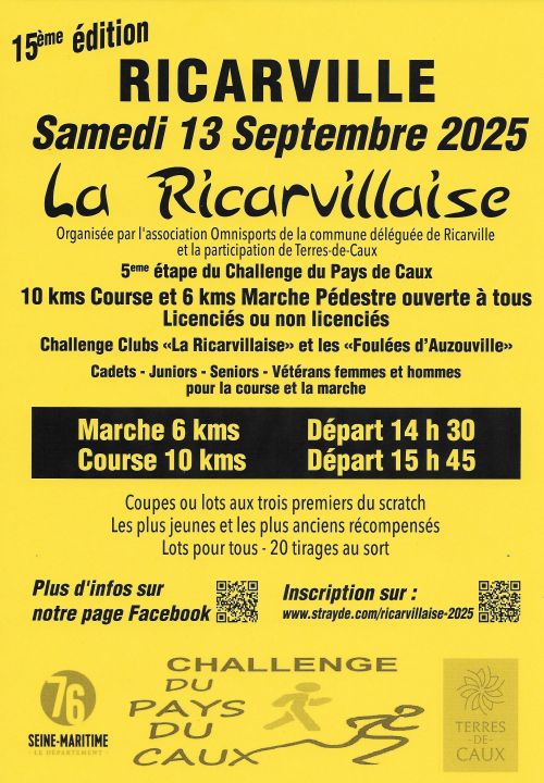 La Ricarvillaise 6km Marche et 10Km Course organisée par l'Association Omnisports Ricarvillaise
