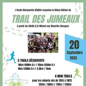 Le Trail des Jumeaux, organisé à Saint-Michel-sur-Meurthe dans les Vosges, propose des parcours variés (de 250 m à 16 km) adaptés à tous, des enfants aux coureurs confirmés. Les sentiers forestiers offrent un cadre naturel préservé, avec des paysages vallonnés et verdoyants typiques du massif vosgien. Une randonnée pédestre et un canicross complètent l’événement. Venez relever le défi dans une ambiance conviviale et découvrez la beauté des Vosges à pied.