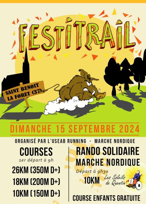 La section USEAB Running et Marche Nordique organise la 2ème édition du FESTITRAIL du VERON à St Benoit la Forêt (37). La majorité des parcours est en sous-bois dans la belle forêt domaniale de Chinon.