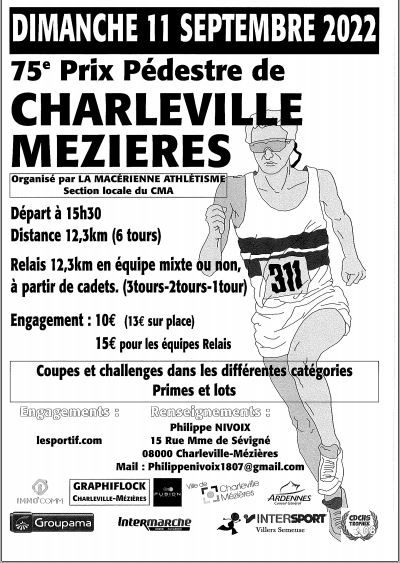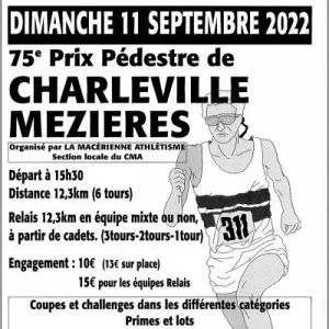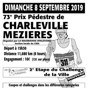 Le Prix Pédestre de Charleville-Mézières, une course sur route de 10 km, se déroule dans le cadre pittoresque des Ardennes. Le parcours, en partie le long de la Meuse, traverse le cœur de Charleville-Mézières, offrant des vues sur ses paysages verdoyants et son patrimoine historique. Accessible à tous, cette course est une belle occasion de découvrir la région tout en relevant un défi sportif. Venez participer et vivre une expérience unique !