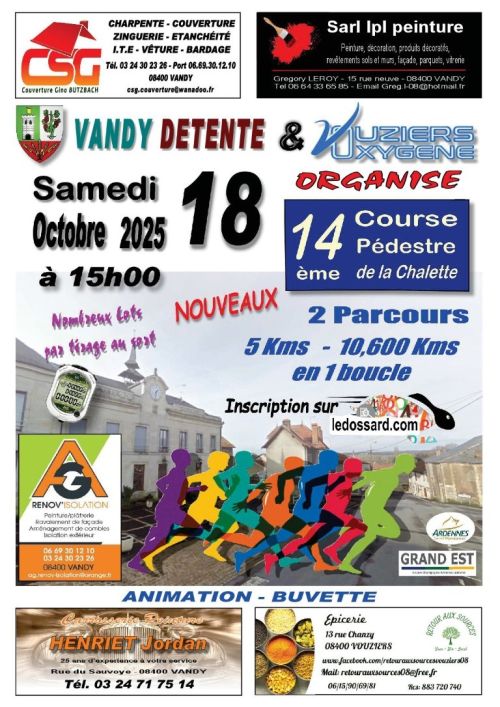 Course qui commence dans le village pour se poursuivre dans nos chemins et revenir dans le village nous avons une ambiance conviviale et un ravitaillement très apprécié! Nous avons des lots dont un gros lot pour le tirage au sort des dossards.