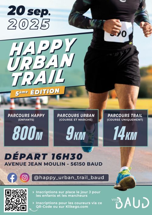 L'Happy Urban Trail est un trail urbain qui se déroule à Baud, une commune du Morbihan en Bretagne. Les parcours traversent les infrastructures locales et le patrimoine de la ville, offrant des vues sur des sentiers pittoresques et des paysages typiques de la région. Rejoignez cet événement pour une expérience sportive accessible à tous.