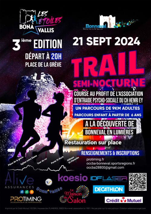 La Ville de Bonneval organise, avec l'aide de l'OCCBA, un trail urbain, « Les Etoiles de BonaVallis ». L’objectif est bien évidemment l’effort physique, mais aussi permettre aux personnes de découvrir notre belle ville illuminée. Le parcours emprunte quelques portions de chemin et les rues du centre ville de Bonneval, en visitant la plupart des monuments historiques : l’Eglise, la Porte Saint Roch, la Porte et le Pont de Boisville, les fossés avec les murs d’enceinte.