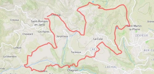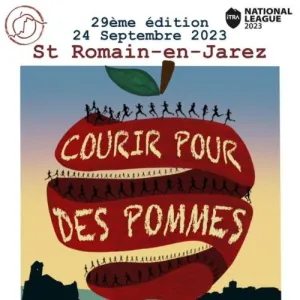 La course "Courir Pour des Pommes" se déroule à Saint-Romain-en-Jarez, un village situé dans le Parc naturel régional du Pilat, en bordure du massif du Jarez. Les parcours traversent des chemins et sentiers ruraux, bordés de vergers de pommes et de paysages vallonnés typiques de cette région agricole. Rejoignez cet événement pour une expérience de trail accessible à tous.