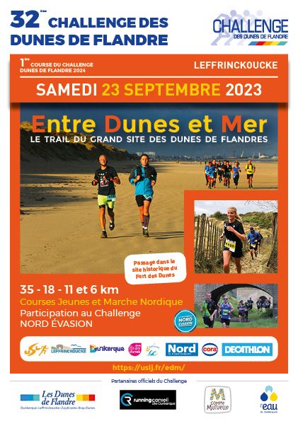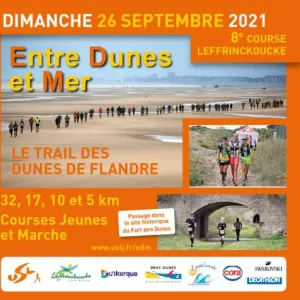 Les courses pédestres Entre Dunes et Mer organisées par l’US Leffrinckoucke avec le concours de la ville de Leffrinckoucke sont de véritables courses nature. Partenaire du challenge des Dunes de Flandres, plusieurs courses sont au programme dont une marche nordique non chronométrée de 11 km. Pour satisfaire les amoureux du trail, un circuit de 35km est proposé et s’aventurera sur les communes de Leffrinckoucke, Dunkerque, Zuydcoote et Bray-dunes en alternant plage, dunes et chemins forestiers.