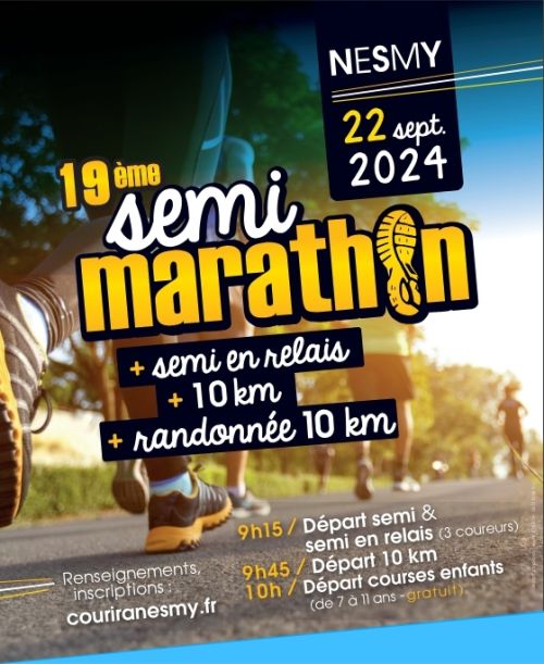 Le Semi-Marathon de Nesmy, prévu à Nesmy en Vendée, propose des parcours de 10 km et 21,1 km au cœur des paysages vendéens. Les coureurs traverseront des villages pittoresques et des chemins bordés de nature, offrant une expérience alliant sport et découverte. Une randonnée de 10 km et des courses enfants sont également au programme. Rejoignez cette 20e édition pour une journée conviviale et sportive !
