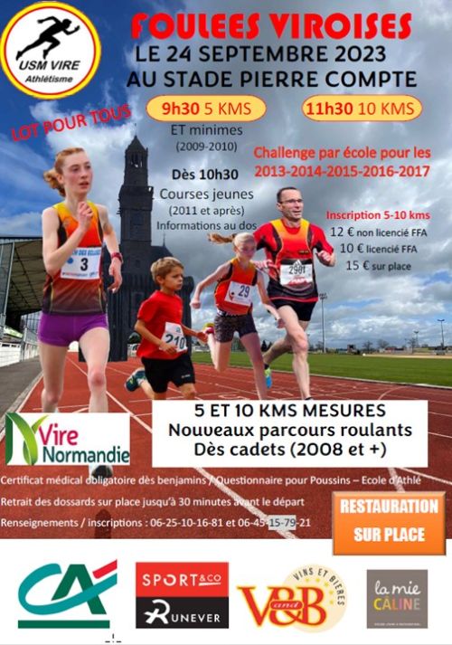 Les Foulées Viroises sont une course à pied organisée à Vire-Normandie, en Normandie, une commune située au cœur de la campagne bocagère. Le parcours traverse des paysages variés, mêlant sentiers ruraux, bois et vallées verdoyantes typiques de la région. Rejoignez cet événement pour une expérience conviviale en pleine nature.
