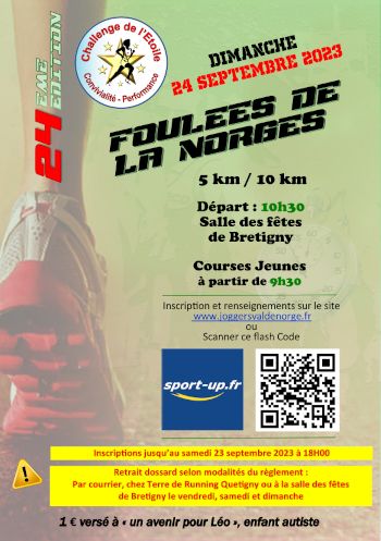 Les Foulées de la Norges organisées par l’Association des Joggers du Val de Norges (AJVN). La manifestation comporte 5 épreuves distinctes ouvertes à tous, licenciés ou non. L’association des Joggers du Val de Norges reversera 1€ sur chaque inscription à l’Association « Un avenir pour Léo ».
