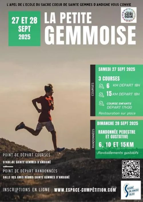 La Petite Gemmoise, course nature à Sainte-Gemmes-d'Andigné, invite coureurs et marcheurs à découvrir les sentiers et chemins de la campagne angevine. Au cœur des Pays de la Loire, le parcours traverse des champs verdoyants et des forêts paisibles, offrant un cadre naturel agréable. Avec des distances de 6 km et 15 km, cet événement organisé par l’APEL Sacré Cœur est ouvert à tous, débutants comme confirmés. Venez participer à cette expérience conviviale et profiter d’un moment sportif en pleine nature.