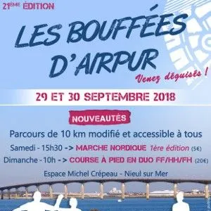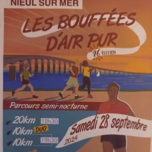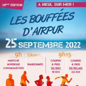 rédige un très court texte de présentation de la course "Les Bouffées d'Airpur" qui se dédoulera le 27 sept. 2025 à Nieul-sur-Mer, avec description de la localisation, des paysages, et incitation a participer, sans afficher d'adresse web dans le texte, ni date, et uniquement a partir de sources fiables, récentes et vérifiées. Rester sobre et ne pas utiliser trop de superlatifs. Les Bouffées d'Airpur, course à pied conviviale à Nieul-sur-Mer, propose des parcours de 10 et 20 km en solo ou en duo, ainsi que des courses enfants. Les sentiers traversent marais, chemins et bords de mer, offrant des paysages naturels entre côtes vendéennes et espaces préservés. Rejoignez cet événement festif pour une expérience sportive accessible à tous, dans une ambiance chaleureuse.