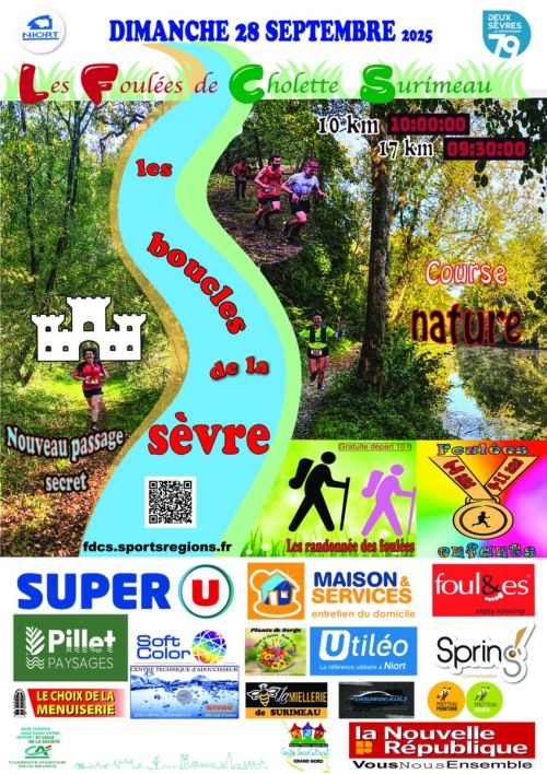 Les Foulées de Cholette - Surimeau invitent les coureurs à explorer Niort, au cœur des Deux-Sèvres. Le parcours serpente entre les quartiers résidentiels de Cholette et Surimeau, longeant la Sèvre Niortaise et traversant des espaces verts modestes, avec des vues sur des marais environnants et des zones urbaines calmes. Rejoignez cette épreuve conviviale pour une sortie accessible à tous les niveaux.