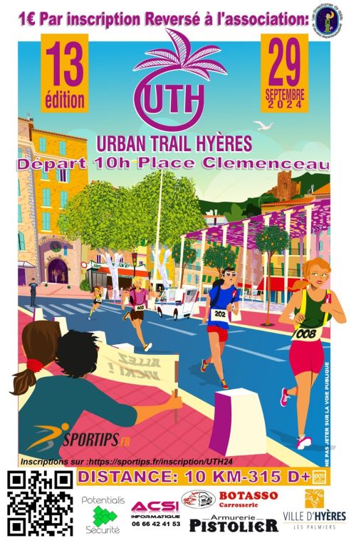 Urban Trail de Hyères, une course atypique entre mer, colline et vieille ville vous fera découvrir la ville de Hyères dans ses recoins les plus pittoresques. Vous foulerez les ruelles pavées et sinueuses de la vieille ville pour partir à la conquête du château avec un panorama à 180° sur les iles d'hyères (Porquerolles, Port Cros, Ile du Levant). Les parcours ont soigneusement été pensés pour se tenir loin de toute circulation automobile.
