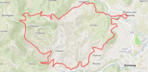 Un tracé d’une vingtaine de kms vous permettra de rejoindre la Croix de Chirol (915 m) « sans escale ». De ce sommet, vous aurez une vue superbe sur les monts du Vivarais d’un côté, du Pilat de l’autre mais aussi du Vercors et des Alpes. Son retour par les bords de la Deume (358 m) ne le rend que plus séduisant.