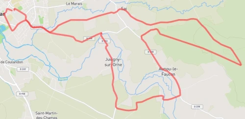 Parcours d'une seule boucle avec passage de 4 kms en forêt. Traversée de 4 villages dans un cadre champêtre. Indication de tous les kms aérien et au sol.