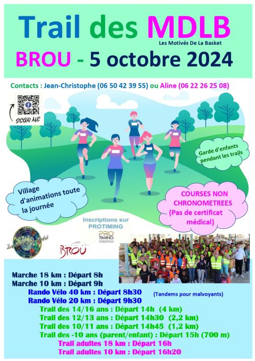 Trail au profit du développement handisport au sein de la commune de Brou. Marches, Rando Vélo, Courses enfants et adultes non chronométrées