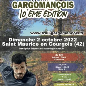Le Trail Gargomançois se déroule à Saint-Maurice-en-Gourgois, dans la Loire, au cœur de la région Auvergne-Rhône-Alpes. Les parcours traversent les sentiers et les paysages des gorges de la Loire, offrant des vues sur des sites comme le château d’Essalois et l’ermitage des Camaldules. Avec des distances variées, la course s’adresse à tous les niveaux, des débutants aux coureurs expérimentés. Participez pour découvrir la beauté naturelle de la région, relever un défi sportif et partager un moment convivial avec d’autres passionnés de trail.