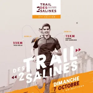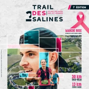 Le Trail des 2 Salines relie par la Via Salina la Saline mère de Salins-les-Bains à la Saline Royale d’Arc-et-Senans en 33 kilomètres et 850m D+. Un tracé sportif et varié qui suit une bonne partie du tracé de l’ancien saumoduc (canalisation en bois qui acheminait l’eau salée de Salins-les-Bains vers Arc-et-Senans) entre les deux Salines, par les vallées de la Furieuse et de la Loue.