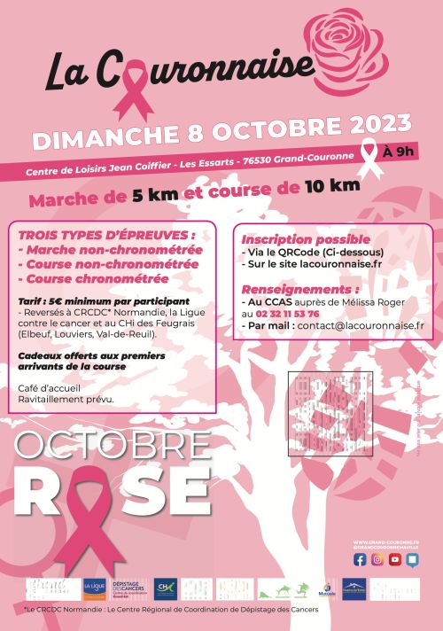 La Couronnaise est une course et marche solidaire qui se déroule à Grand-Couronne, en Normandie, au cœur de la forêt des Essarts. Ce parcours de 10 km sur route et nature offre un cadre boisé propice à l'effort partagé. Rejoignez l'événement pour soutenir la lutte contre le cancer du sein, en famille ou entre amis, et contribuer à une cause utile tout en profitant d'un moment convivial.