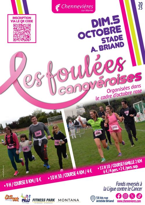 Départ au stade Aristide Briand à Chennevières sur marne, profiter d' un parcours sécurisé et balisé de 8km avec passage à l'intérieur du Fort de Champigny. Un village sportif sera mis disposition avec des animations sportives durant la matinée et de nombreux lots à gagner.