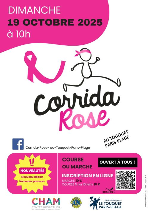 La Corrida Rose est organisée par l’association Touquet Trail Nature (TTN), en collaboration avec le Centre hospitalier de l'Arrondissement de Montreuil et la ville du Touquet. La course et la marche sont organisées afin de récolter des fonds pour les femmes suivies au CHAM pour un cancer du sein.