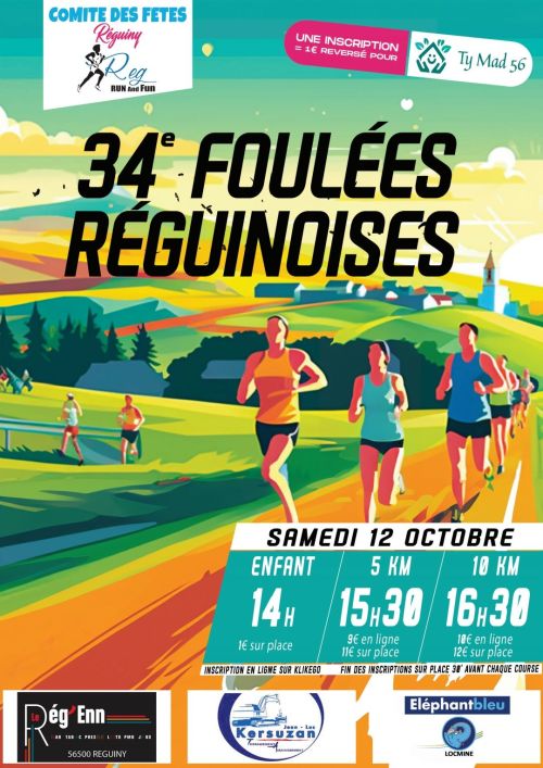 Les Foulées Réguinoises sont une course à pied organisée à Réguiny, commune du Morbihan en Bretagne, au cœur d'une campagne verdoyante traversée par des chemins pittoresques. Cette épreuve propose des parcours de 5 et 10 km sur route, ainsi que des circuits nature de 7 et 14 km, adaptés à différents niveaux. Rejoignez cet événement convivial pour combiner effort physique et engagement solidaire, en soutenant une association caritative. C'est l'occasion de progresser à son rythme tout en partageant un moment simple avec d'autres coureurs.