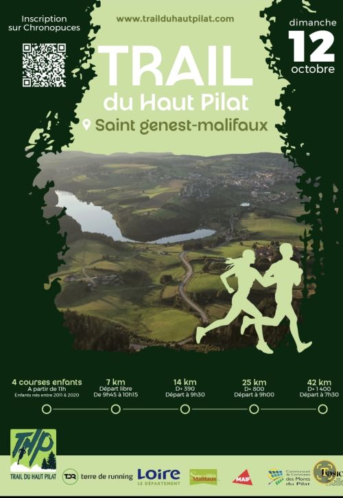 Trail du Haut Pilat en moyenne montagne à 1000m d'altitude, à 20 min de St Etienne, 35 min de Annonay et 1h de Lyon, vous accueille dans un esprit convivial à la découverte du Mont-Chaussitre et de ses alentours à Saint Genest Malifaux. Parcours 100% nature aux choix ainsi que courses enfants vous permettront de choisir votre course en fonction de vos envies.