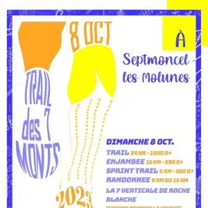 Le Trail des 7 Monts est une course nature qui se déroule à Septmoncel-les-Molunes, un village du massif du Jura en Bourgogne-Franche-Comté, au cœur d'un paysage de moyenne montagne avec forêts denses, sentiers techniques et vues sur les crêtes jurassiennes. Les parcours, de 9 à 34 km avec des dénivelés adaptés, traversent des gorges et des plateaux calmes. Participez pour découvrir ce coin préservé à votre rythme, en partageant une ambiance conviviale avec d'autres coureurs.