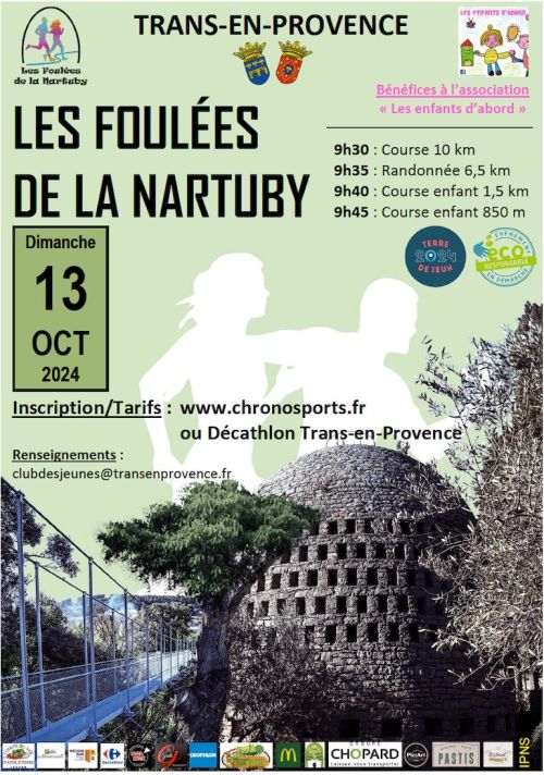 Les Foulées de la Nartuby organisées par la mairie de trans en Provence, avec une 2 courses enfants et une course adulte
