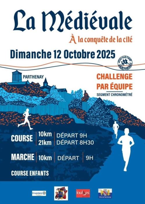 La Médiévale est un trail urbain organisé à Parthenay, dans les Deux-Sèvres, qui traverse la cité médiévale avec ses remparts, monuments et chemins historiques, ainsi que les jardins de Férolles. Ce parcours propose des distances adaptées, sur un relief modéré. Rejoignez cet événement pour découvrir le patrimoine local tout en pratiquant une activité physique accessible à tous.