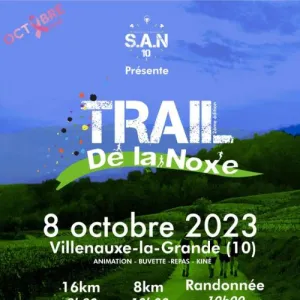 Le Trail de la Noxe est une course nature qui se déroule à Villenauxe-la-Grande, dans l'Aube, au cœur de la région Champagne-Ardenne. Les parcours, de 8 et 16 km, traversent les bois, vignes et sentiers le long de la Noxe, un affluent calme de la Seine. Rejoignez cet événement convivial pour profiter d'une journée en pleine nature, avec randonnée et animations familiales, et découvrir les paysages locaux à votre rythme.
