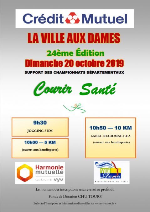 Dans le cadre d'une demi journée sportive l'association "courir santé" organise 3 courses à pied. Le montant des inscriptions sera reversé au Fonds de Dotation du Chu Tours Les meneurs d’allure seront présents cette année !