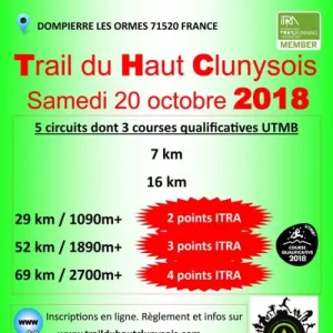 Le Trail du Haut Clunysois (THC) avec 5 courses au programme de cette journée sportive, avec circuits modifiés ! Vous ne découvrirez ces circuits que lorsque que vous serez en course ! Vous aurez le plaisir de courir en pleine nature sur des chemins de campagne et de massifs forestiers dans notre belle région du Haut Clunysois en Bourgogne du sud.