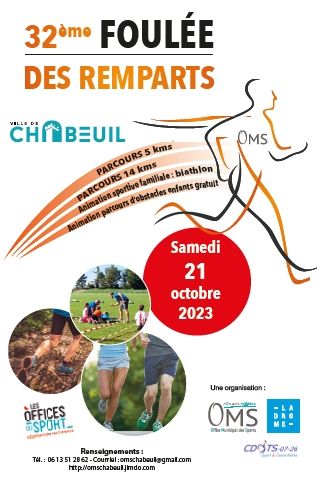 L’Office Municipal des Sports de Chabeuil avec l’aide des associations sportives de Chabeuil, organise la Foulée des Remparts aux stades des Flandennes à Chabeuil.
