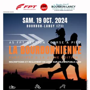 Courses à pied organisées par l'AS FPT avec l'aide du CE FPT sur route et chemin, traversant les plus beaux quartiers de Bourbon-Lancy (lac, parcs, jardins éphémères, vieux quartier, remparts...). 2 formats de course cette année.