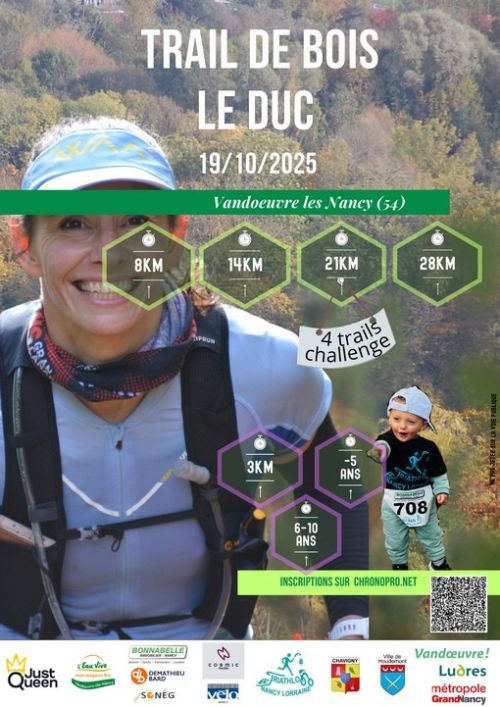 Le Trail de Bois le Duc invite les coureurs à explorer les sentiers boisés des hauteurs de Vandœuvre-lès-Nancy, une commune située à proximité de Nancy en Meurthe-et-Moselle. Ce parcours nature, accessible depuis l'hôpital de Brabois et ses liaisons en transports en commun, propose des distances variées pour adultes et enfants, dans un cadre boisé et vallonné. Rejoignez l'événement pour profiter d'une ambiance conviviale et découvrir des paysages locaux à votre rythme.