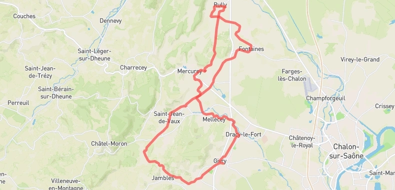 Au cœur des vignobles de la Côte Chalonnaise, il traverse Givry, Jambles, Barizey, Saint-Jean-de-Vaux, Saint-Martin-sous-Montaigu, Mercurey, Fontaines, Rully, Mellecey, Dracy-le-Fort et revient à Givry.