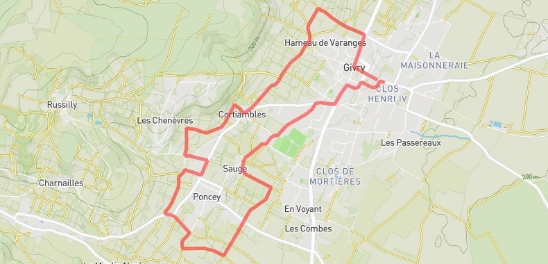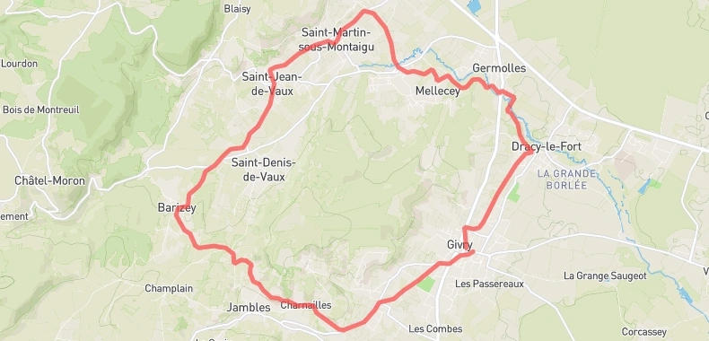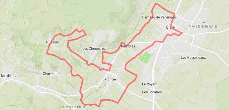 L’épreuve traverse la commune de Givry, le hameau de Cortiambles et celui de Poncey, puis retour à Givry.