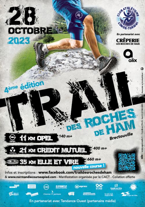 Le Trail des Roches de Ham invite les coureurs à explorer les chemins étroits et les paysages bocagers du site des Roches de Ham, situé à Brectouville près de Condé-sur-Vire, en Normandie. Organisé par le Club d’Athlétisme de Condé-Torigni, cet événement propose plusieurs distances adaptées à différents niveaux, au cœur d’une nature préservée. Rejoignez-nous pour affronter ces sentiers vallonnés et partager une journée de course conviviale.