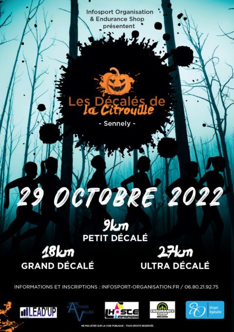 Les Décalés de la Citrouille est une épreuve de « course nature nocturne » qui se déroule à Sennely et ses alentours. Dans un des plus beaux endroits de la région centre, la Sologne, Infosport Organisation vous présentent la 5ème édition d’une course 100% nature, une course 100% nocturne et une course 200% plaisir.A chacune et à chacun d’entre vous de tenter de défier un des 3 parcours selon votre niveau. Tous les ingrédients de la course nature seront réunis pour que chaque trailer s’exprime physiquement, techniquement et se dépasse.