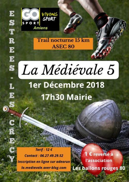 L'association « AS ESTREES LES CRECY » organise la cinquième édition de « La Médiévale », course nocturne de 15 kms sur routes bitumées, chemins forestiers et chemins ruraux en alternance.