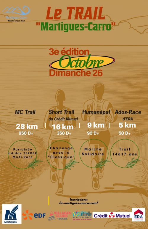 La course Martigues-Carro est un trail qui se déroule à Martigues, dans les Bouches-du-Rhône, en Provence-Alpes-Côte d'Azur. Elle relie la ville au petit port de pêche de Carro, en traversant la Côte Bleue avec ses collines, ses sentiers boisés et ses vues sur la Méditerranée. Avec des parcours de 16 km et 28 km, adaptés à différents niveaux, elle invite à découvrir un paysage côtier authentique. Rejoignez cet événement pour profiter d'une sortie en nature, partager un moment convivial et tester vos limites sur un terrain varié.