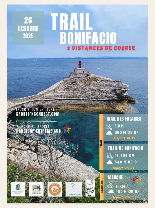 Le Trail de Bonifacio invite à une course nature au cœur de Bonifacio, cité perchée sur les falaises calcaires du sud de la Corse. Les parcours serpentent le long des sentiers escarpés, du maquis méditerranéen et des abords de la haute-ville, offrant un dénivelé modéré sur des distances accessibles. Rejoignez cet événement pour découvrir les paysages côtiers corses à pied et partager un moment convivial avec d'autres coureurs.