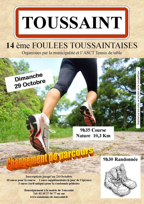 Les Foulées Toussaintaises sont une course nature de 10 km qui se déroule à Toussaint, un village paisible de Seine-Maritime en Normandie. Le parcours emprunte petites routes et sentiers à travers la campagne environnante, offrant un cadre rural calme et accessible.