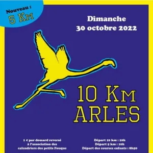 L’association des 10 km d’Arles organise les 10 km d’Arles. Parcours en boucle intra-muros empruntant uniquement les routes goudronnées. La course est ouverte aux licenciés(es) et non licenciés(es) des catégories cadet, junior (autorisation parentale exigée pour les mineurs(es)), espoir, sénior, M1, M2, M3, M4 et plus, masculin et féminin. Courses enfants à partir de 8h50 (300m – 1km – 1,3km – 2,6km).